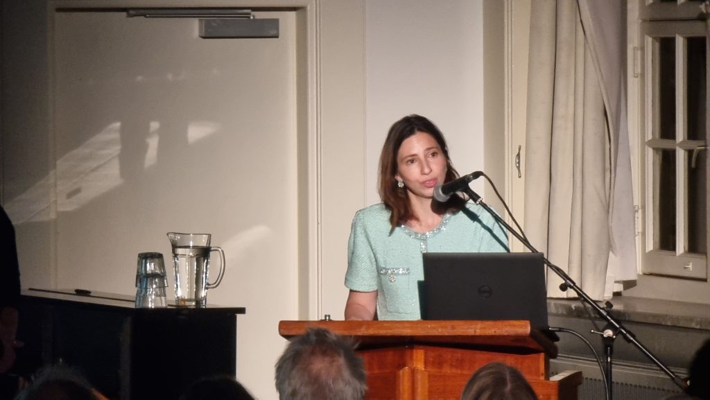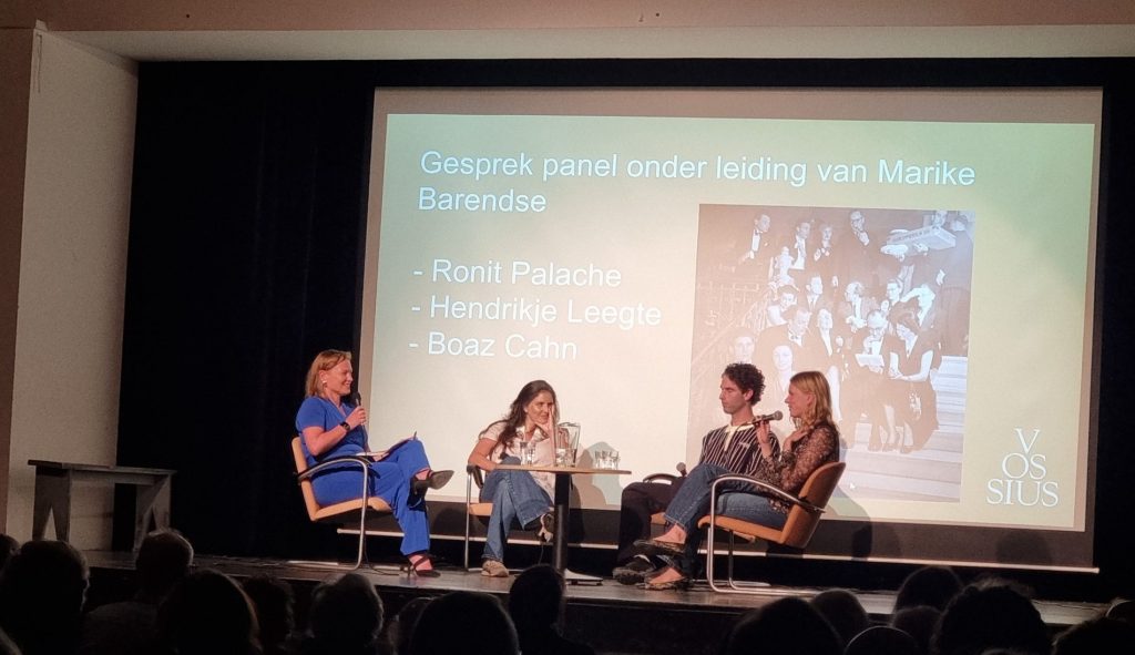 Docent Marike Barendse leidde een levendige paneldiscussie met oud-leerlingen Hendrikje Leegte en Boaz Cahn en publiciste Ronit Palache.